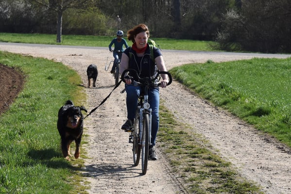 Nach etlichen Jahren Pause haben Annabelle und ich unser altes Hobby "zusammen Radfahren" wieder entdeckt. Anlass war die geplante Ausdauerprüfung auf unserem Hundeplatz. Zuerst mangels zu erwartender ausreichender Teilnehmer mit Begleithundeprüfung als mögliche Reservestarterin geplant, hat uns das gemeinsame Training so viel Spaß gemacht, dass wir die Prüfung unbedingt mitmachen wollten. Mit 10 weiteren Hovawarten ging es an den Start. Wir trabten und radelten fast 20 km mitten durch das zarte Frühlingserwachen der Zülpicher Börde, mit Gleichgesinnten, mit denen wir auch in den 2 Wochen zuvor schon schöne, etwas kürzere Sonntagstouren unternommen hatten. Alle zusammen sind wir gut gelaunt und mit bester Kondition im Ziel angekommen und haben nach einer kurzen Unterordnung Urkunde und Schleife erhalten. Annabelle, mit 8 3/4 Jahren ging als älteste Starterin an den Tag und konnte souverän mit den jungen Wilden mithalten. Weitere Impressionen hier, auf Annabelles Seite.
