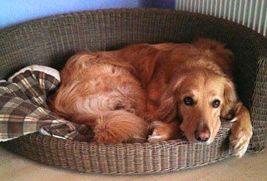 Selten gezeigt, aber nicht weniger fest in unserem Herzen verankert: Merlin(Antek) Thalers ältester Blonder mit fast 4 Jahren in seinem Lieblingskörb(chen).