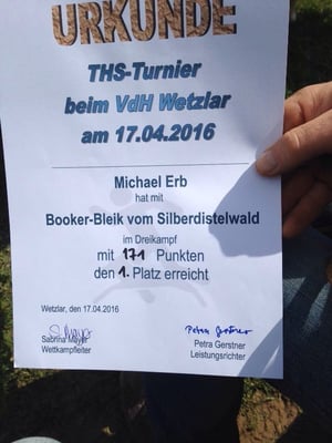 Das Starterfeld bestand aus 9 überwiegend älteren Rüden. Wir gratulieren dem Team Micha und Booker ganz herzlich zu ihrem erfolgreichen dritten Platz. Toll gemacht!!!