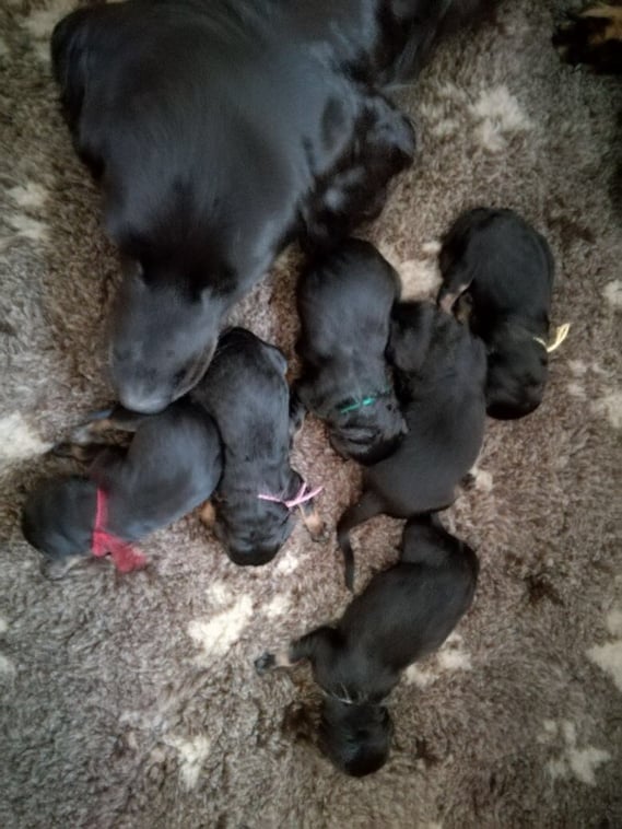 sind heute Eltern von 6 Welpen, alle schwarzmarken, geworden.