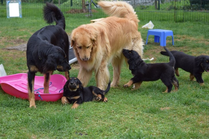 Sieben wunderbaren Welpen hat Aquila mit Booker das Leben geschenkt! Es handelt sich um 3 Hündinnen ( 2x schwarzmarken, 1x blond) und 4 Rüden ( 2x schwarzmarken,  2x blond). Wir wünschen der jungen Familie einen guten Start!