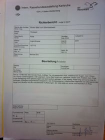 Richterin freundlich und sicher und erhielt sogar die bestmögliche Bewertung in seiner KLasse ( sehr gut) und wurde platziert!