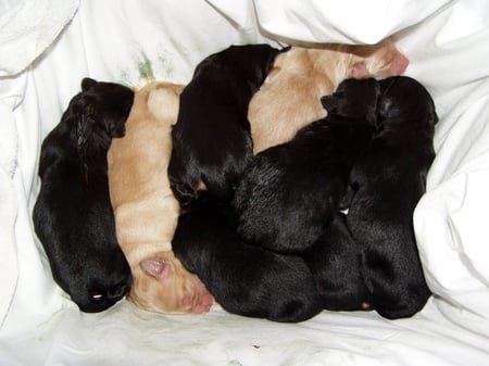 Thaler mit einem Teil ihrer 10 Geschwister (vom Hof der Vielfalt) drei Tage nach ihrer Geburt im Januar 2007.